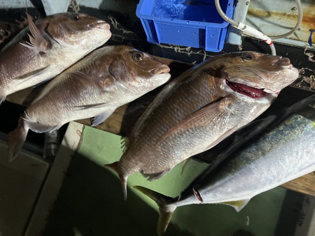 ★1 大型真鯛に良型アコウ連チャンやブリ等はよかったですが、 結果的に両便ともにパットせずとなりました。 乗船ありがとうございました。 m(_ _)m 釣果 🟡🔴🔵🟠🟣近日予定&お知らせ🟡🟠🟤🟢🟣 24(月)およがせ この記事を書いた人 船長 西村 関連記事 24(月)およがせ 2025年11月24日 🟡🔴🔵🟠🟣近日予定&お知らせ🟡🟠🟤🟢🟣 2025年11月23日 22(土)およがせ《朝便》【etc】 2025年11月22日 19(水)およがせ🐟《朝便》 2025年11月20日 17(月)およがせ🐟《朝便》、うたせ🦐《昼便》72 2025年11月18日 15(土)タチウオD B《朝便》 2025年11月16日 14(金)うたせ🦐《昼便》71 2025年11月16日 13(木)うたせ🦐《昼便》70 2025年11月13日