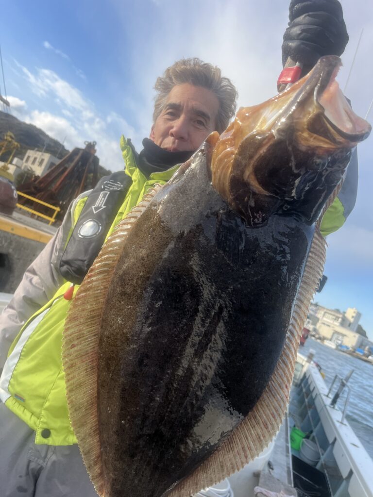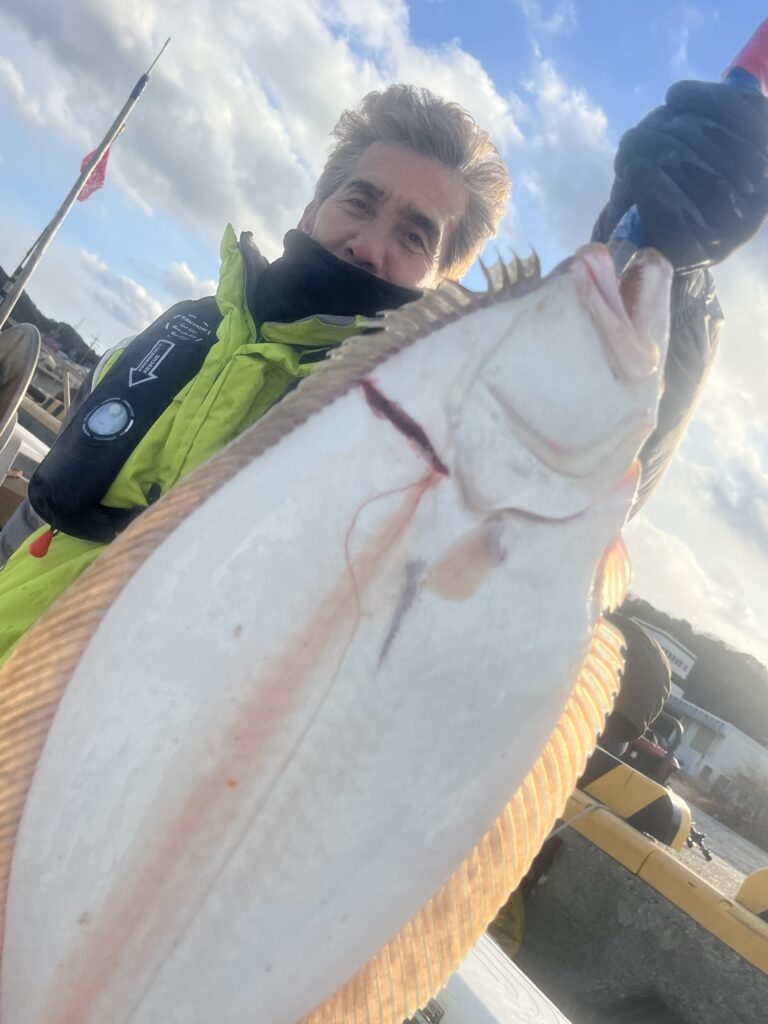 ⬆️これも68㎝。肉厚良型寒ビラメを釣りまくり😊。なぜかこの写真も変な角度です😊💦